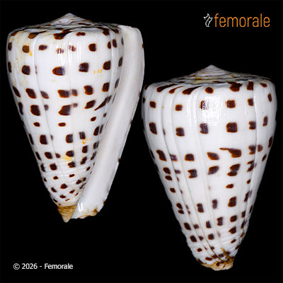 | Family: CONIDAE | Description: F++, BRIGHT WHITE BACKGROUND WITH SQUARE BLACK MARKINGS, COLLECTED IN 1962, EX.COLL. DOUGLAS SNOOK | Id Shell: 383388 | Location: Philippines | Size: 53.5mm | Price: $12.00 |