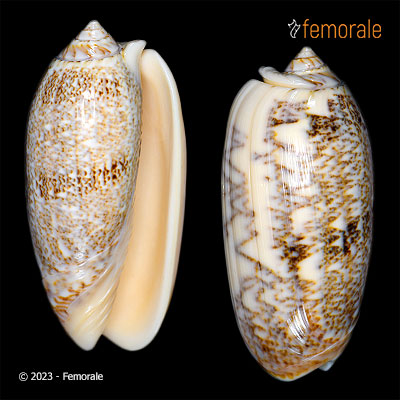 | Family: OLIVIDAE | Description: F++, NICE PATTERNS! COLLECTED IN 2007 (CON) | id concha: 342350 | Location: Philippines | Size: 64.5mm | Price: $12.00 |
