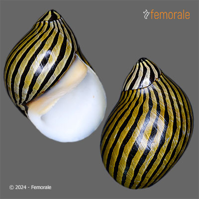 | Family: NERITIDAE | Description: F++, HUGE! NICE DARK PATTERNS! GREEN PERIOSTRACUM! FABULOUS SHELL! | id concha: 357746 | Location: Indonesia | Size: 26.5mm | Price: $6.00 |