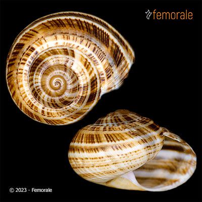 Description: F++, VERY STRANGE SPECIES FROM GRANMA PROVINCE! PALE CREAM SHELL WITH BROWN BAND ON THE SUTURE AND BROWN UMBILICUS! COULD BE ALSO A FORM OF HEBES!